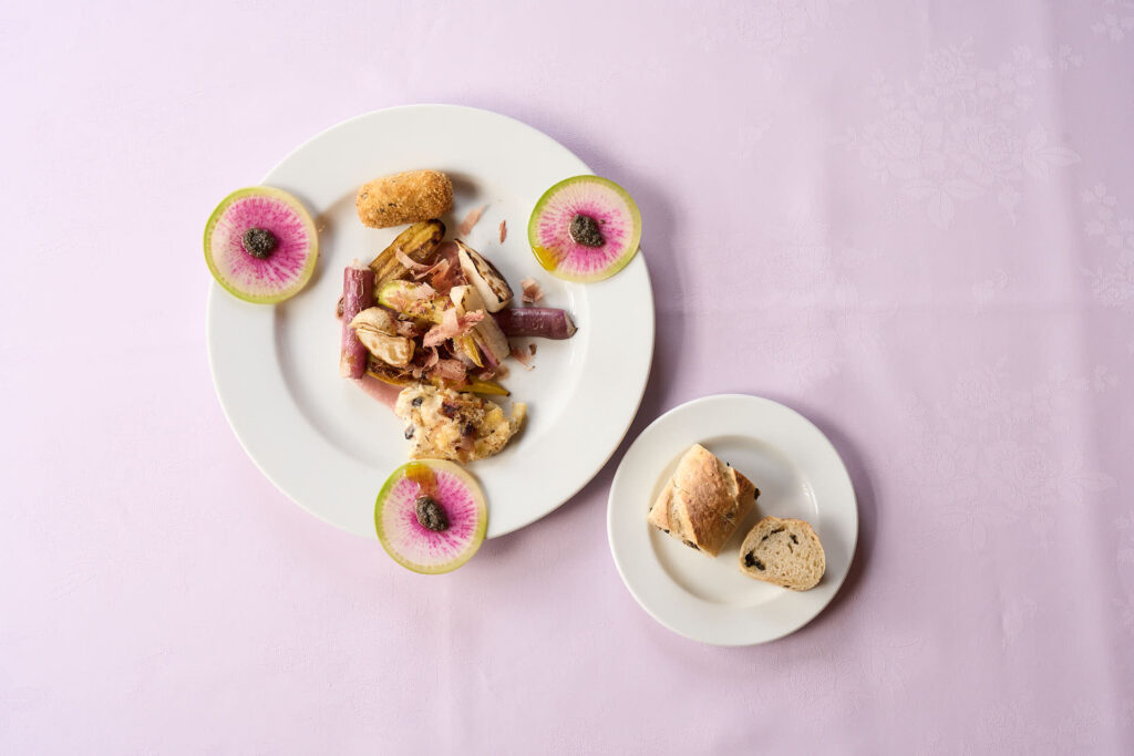鈴木克則シェフによる、地場食材を活かしたフランス料理が披露されました。塩鰹を使ったコロッケ、グラタン、ピューレ、全粒粉パン、クッキーなどバラエティ豊かなお料理でした。 - 鈴木健太郎シェフ|THE HIRAMATSU HOTELS & RESORTS 熱海